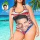 Bathing Suits for Plus Size Women Custom Bathing Suit with Husbands Face - American Flag