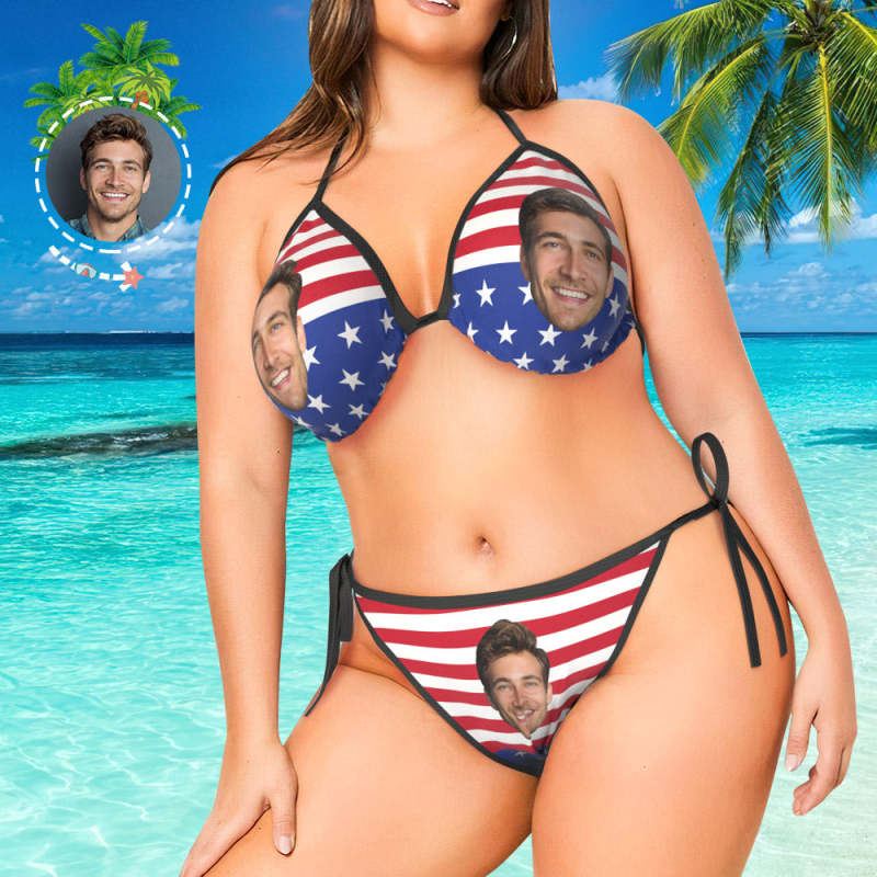 Plus Size Women Face Swimsuit Custom Bikini with Husband Face