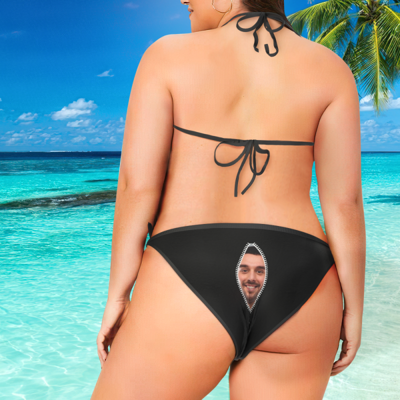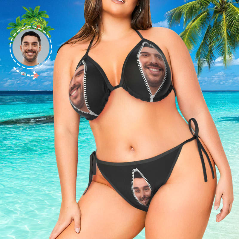 Bathing Suits for Plus Size Women Face Swimsuit Custom Bikini with Face - Zipper