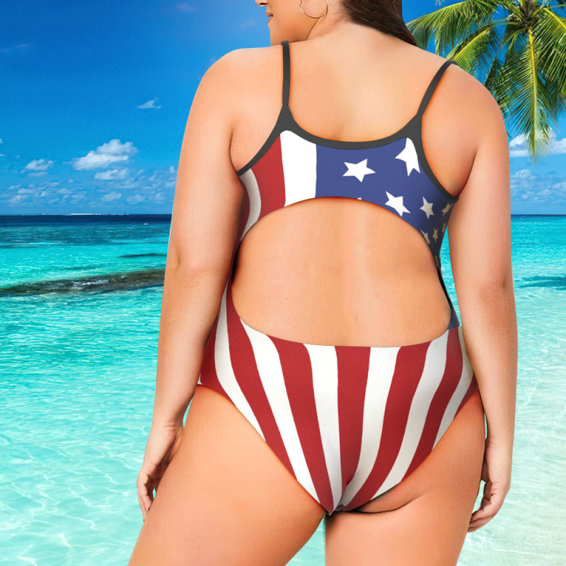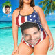 Best Plus Size Swimwear Custom Bathing Suit with Big Face - American Flag