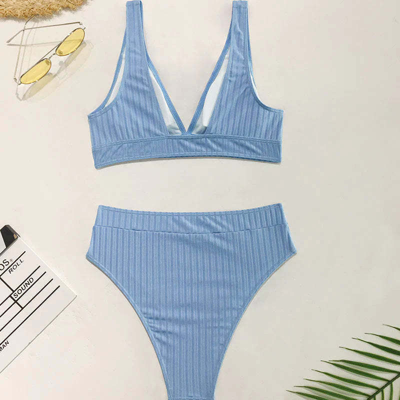 Bikini Solid Color High Waist Sexy Women's Split Swimsuit