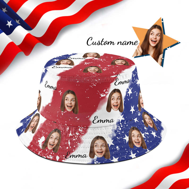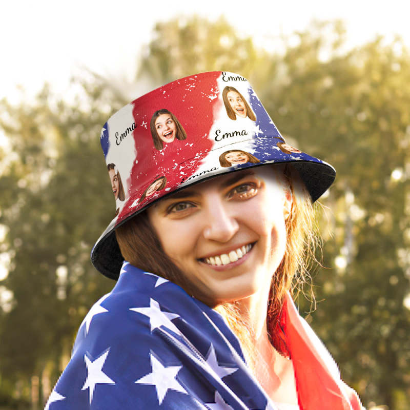 Custom American Flag Print Bucket Hat Personalized Fisherman Hat
