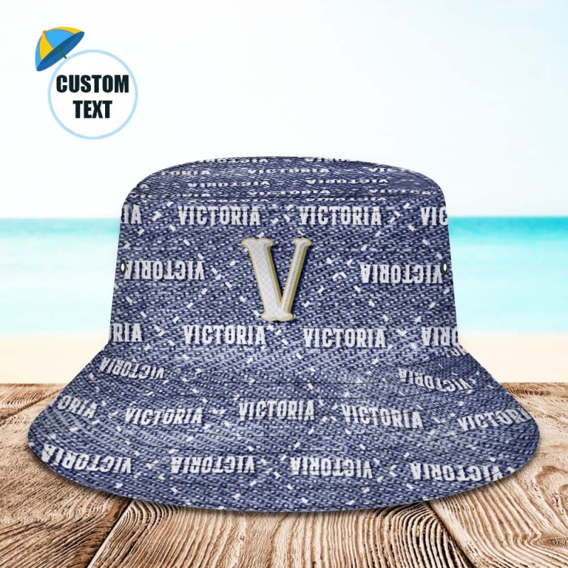 Custom Bucket Hat Unisex Blue Denim Style Fisherman Hat Personalized Your Name