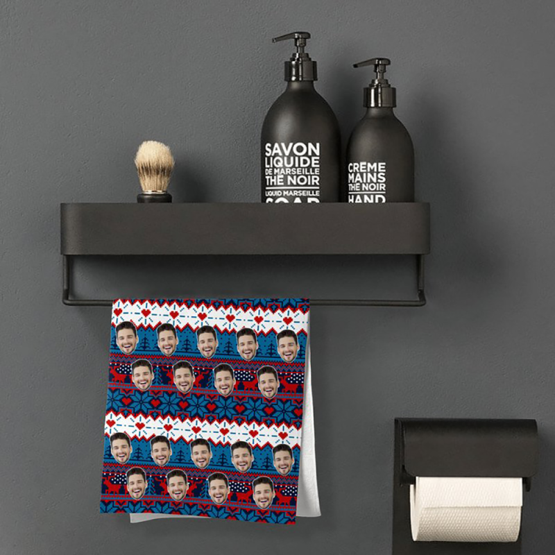 Custom Christmas Face Towel Red Heart Personalized Photo Towel Funny Christmas Gift