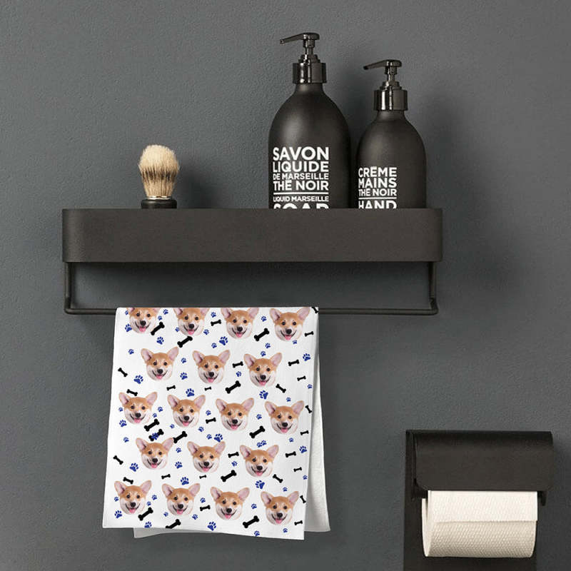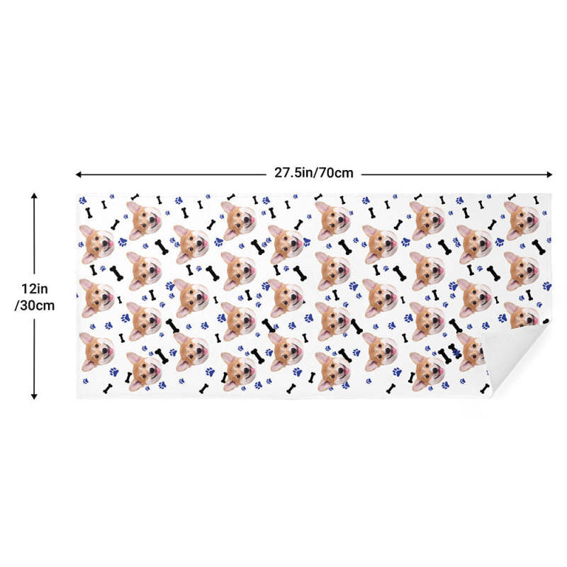 Custom Dog Faces Paw and Bone Towel Personalized Photo Towel Funny Gift