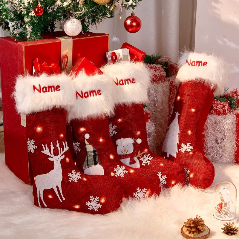 Custom Embroidered Christmas Stocking Personalized Name Gift Bag Sock Holiday Decoration for Kids