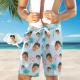 Custom Face And Number Birthday Beach Shorts Red And White Coconut Tree Beach Trunks