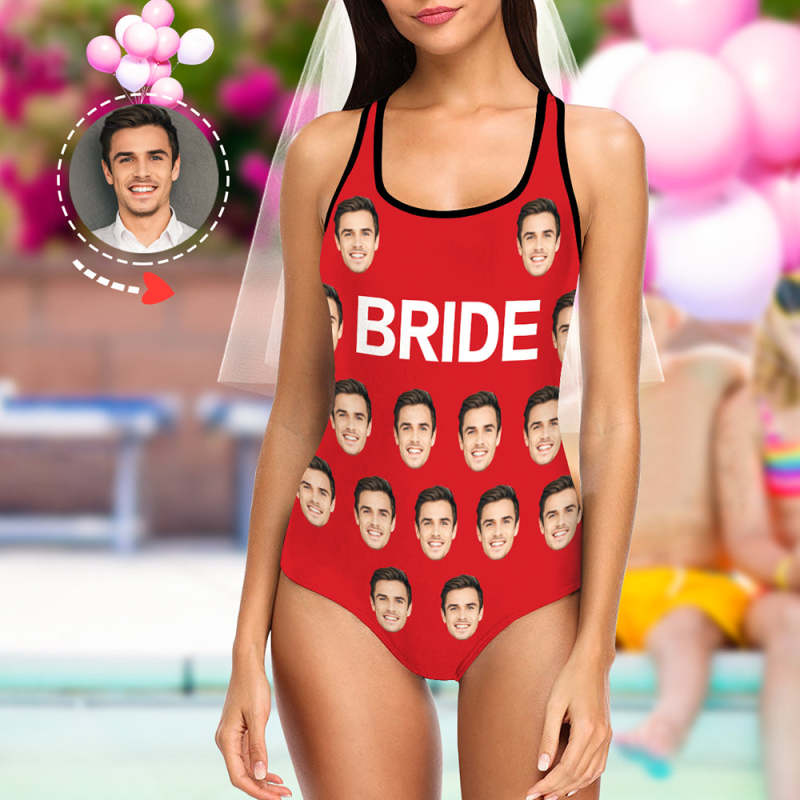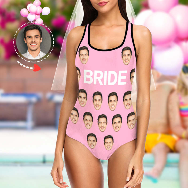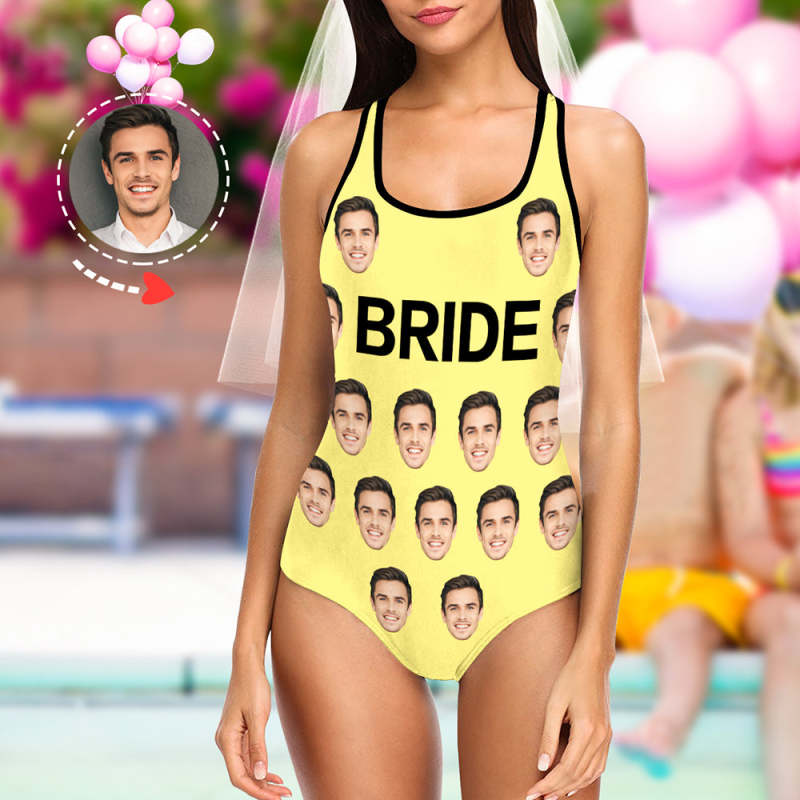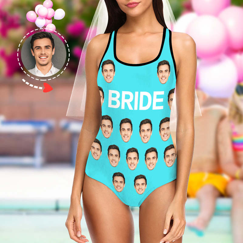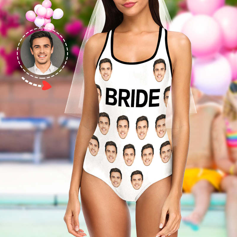 Custom Face Bathing Suit Bride Squad Swimsuit Personalized Swimsuit with Photo