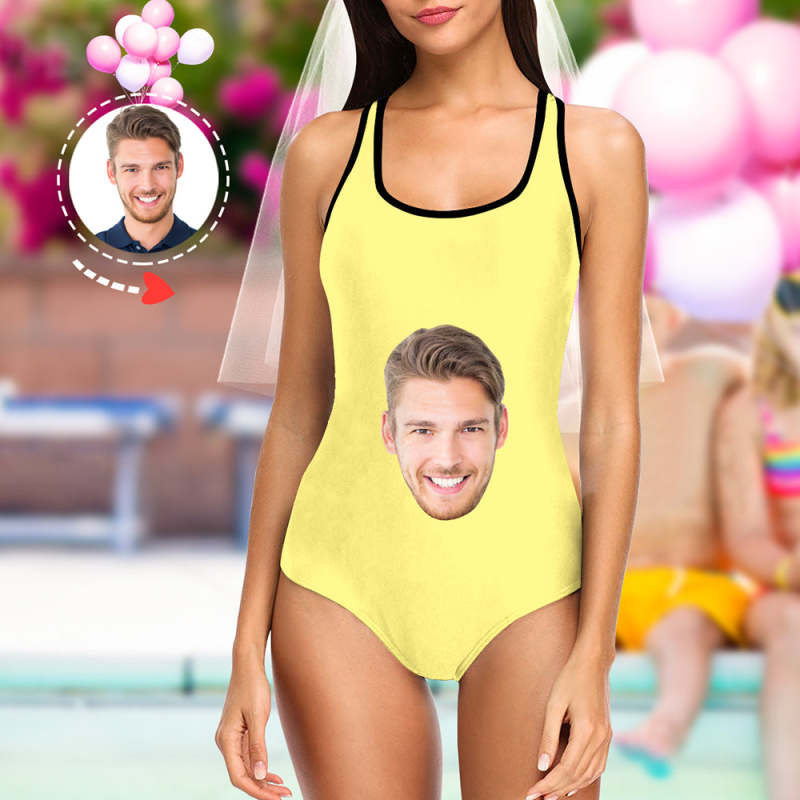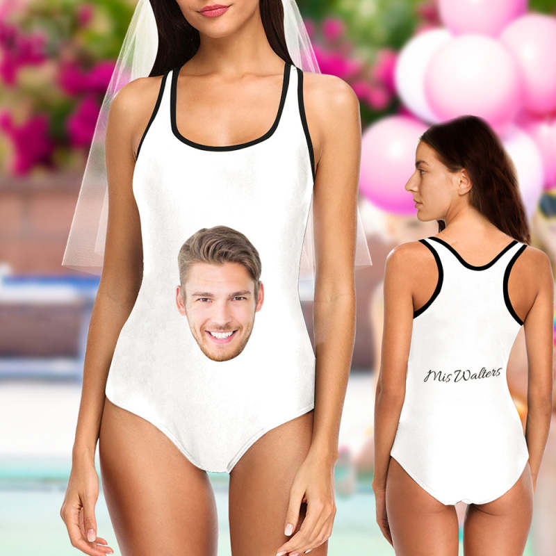 Custom Face Bathing Suit Personalized Swimsuit with Photo and Text Bride One Piece Swimsuit