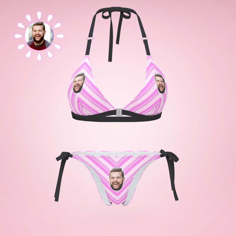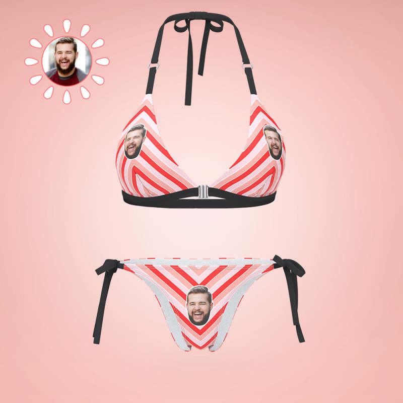 Custom Face Bikini Women's Sexy Back & Front Close Swimwear Colored Stripes Gift For Her