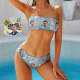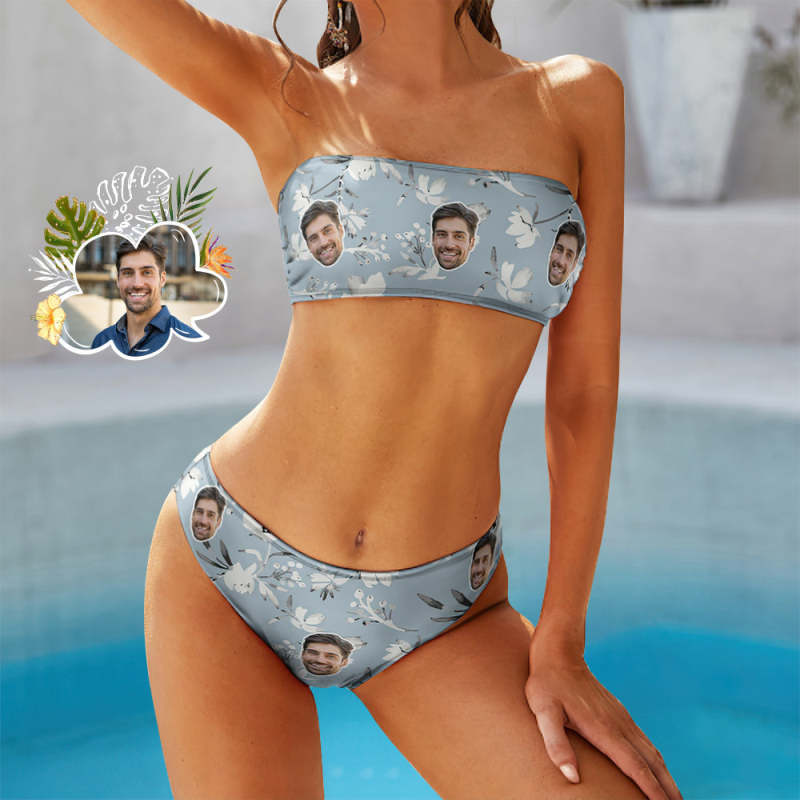 Custom Face Blue Bikini swimming costume Bandeaukini Gift For Her - Tropical Flowers