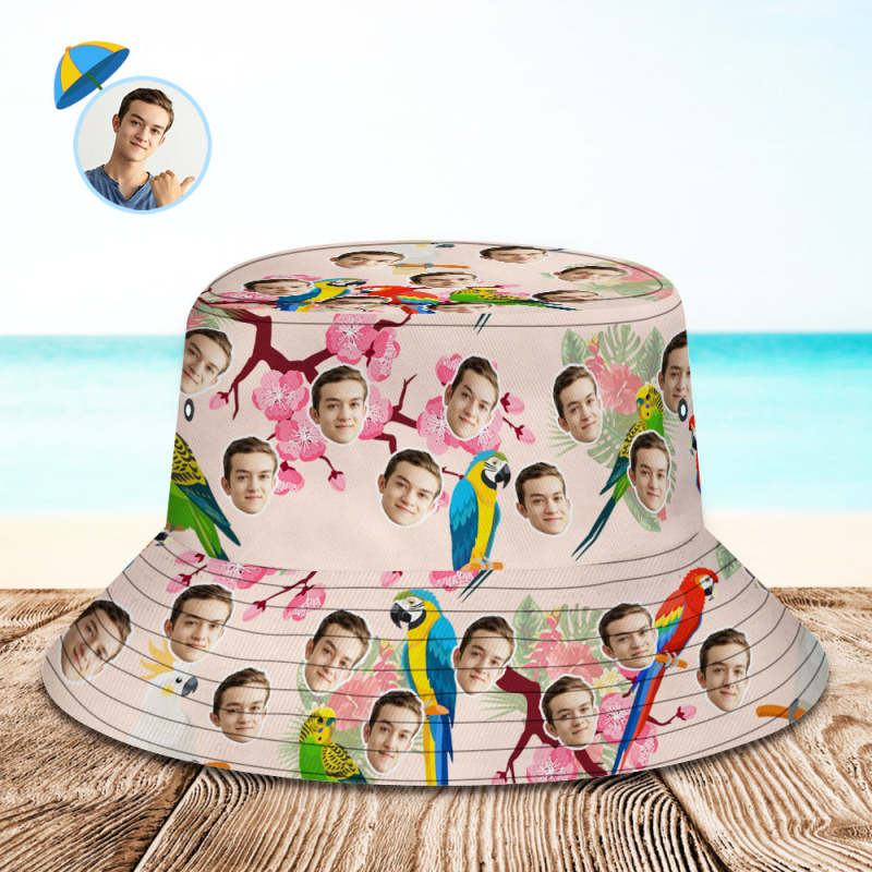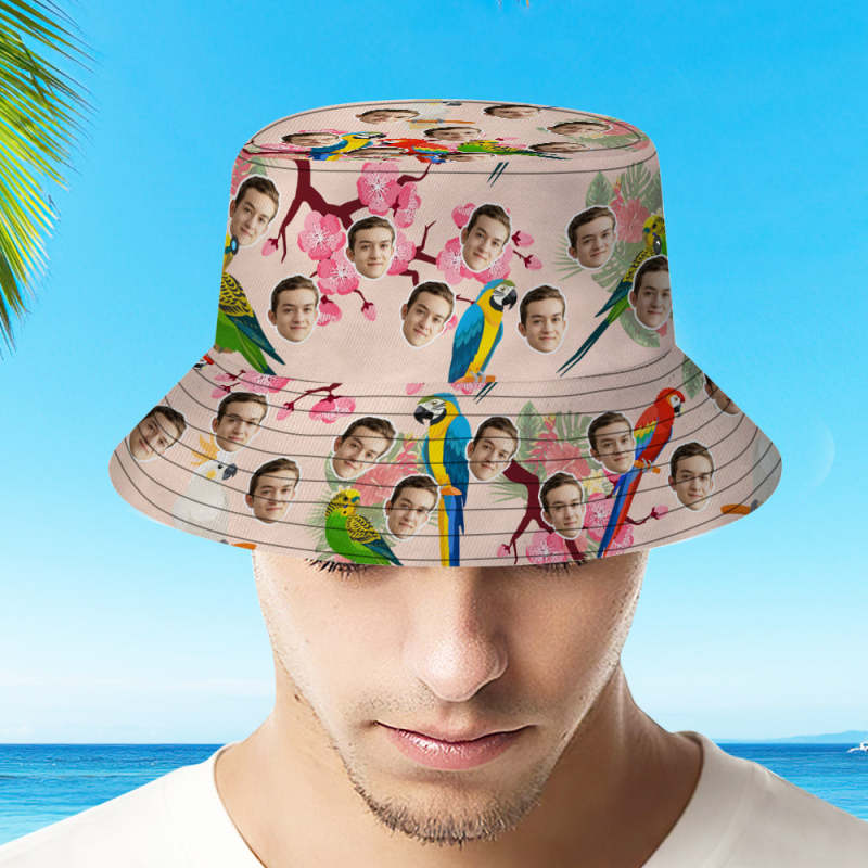 Custom Face Bucket Hat Personalized Funny Parrot Unisex Fisherman Hat Creative Gift