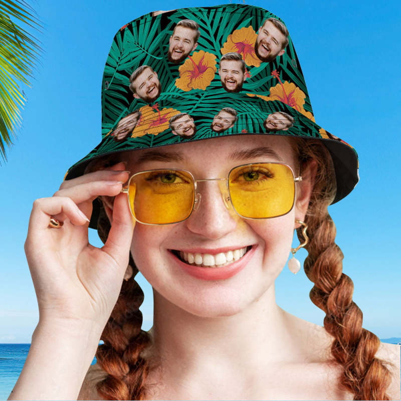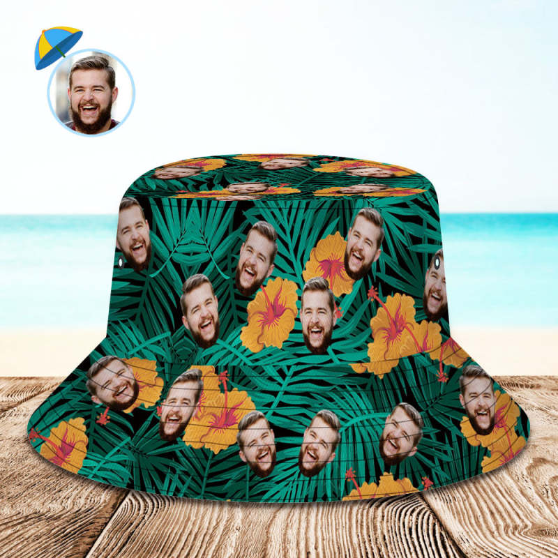 Custom Face Bucket Hat Personalized Hibiscus Flower Print Hawaiian Fisherman Hat