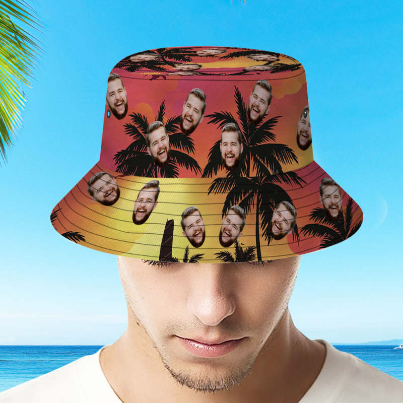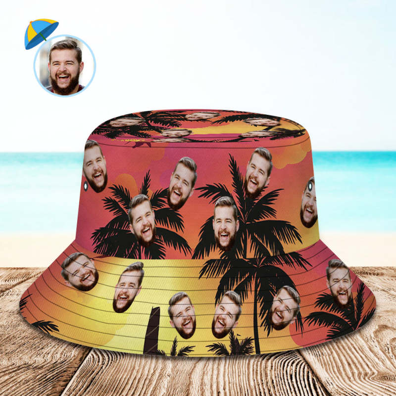 Custom Face Bucket Hat Personalized Sunset Coconut Tree Print Fisherman Hat