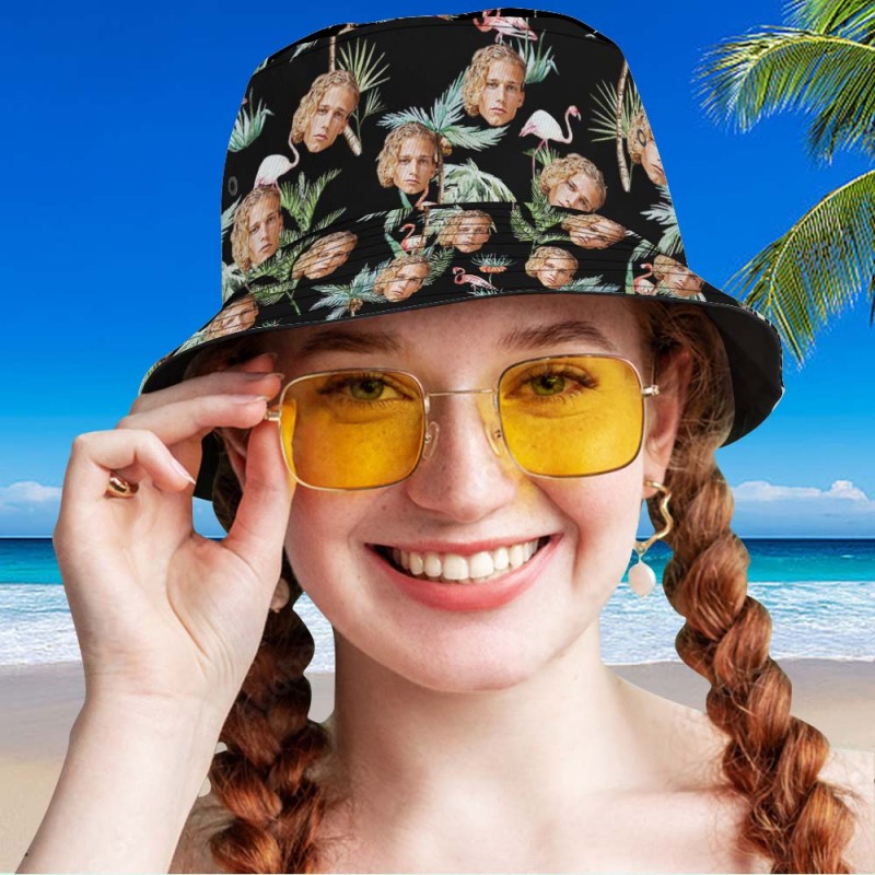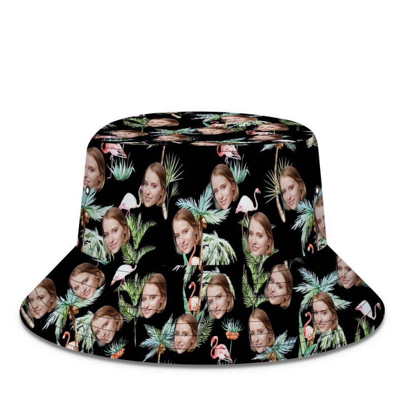 Custom Face Bucket Hat Unisex Face Bucket Hat Flamingo Nights PalmTrees