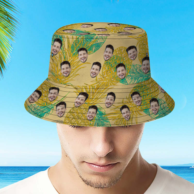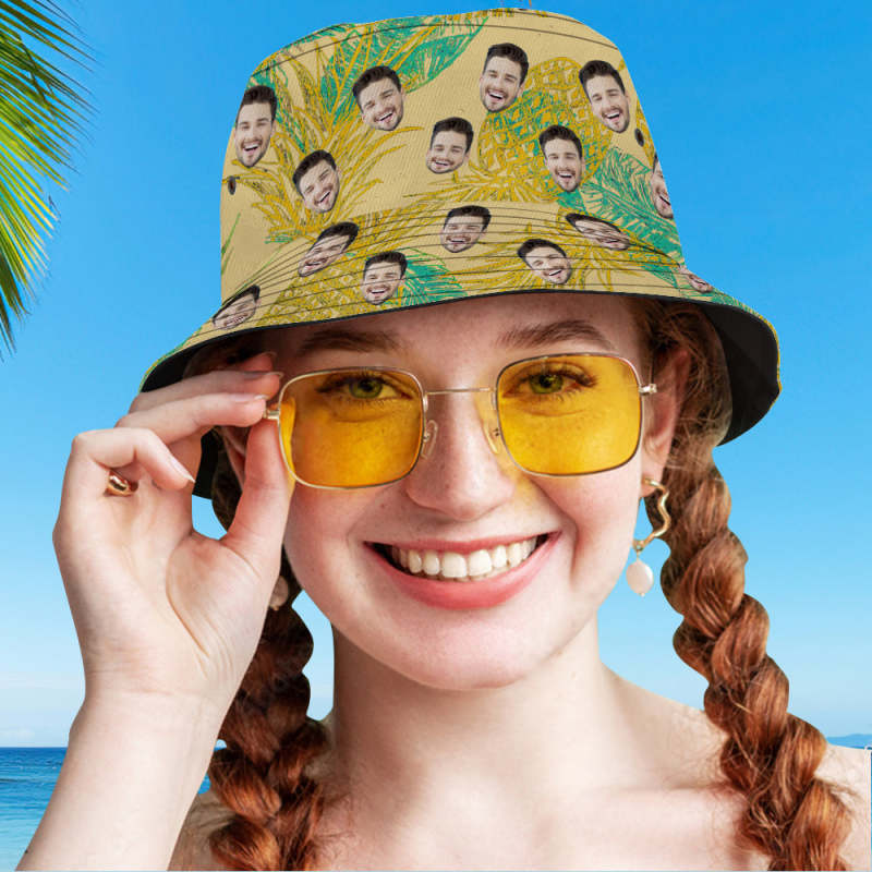 Custom Face Bucket Hat Unisex Fisherman Hat Tropical Leaves Print Fisherman Hat