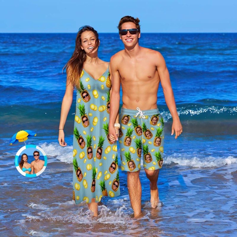 Custom Face Couple Matching Outfits Pineapple Beach Wear Set