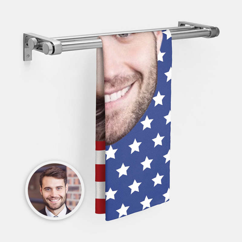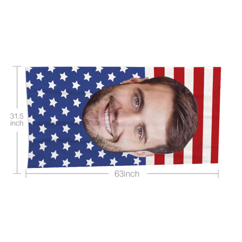 Custom Face America Flag Towel Personalized Photo Beach Towel Funny Gift