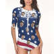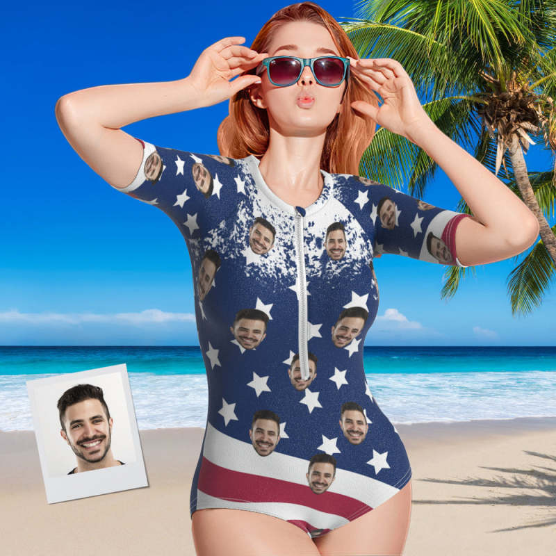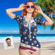 Custom Face Half Sleeve Swimsuit One Piece Swimwear Personalized Flag Women's Half Sleeve Swimsuit