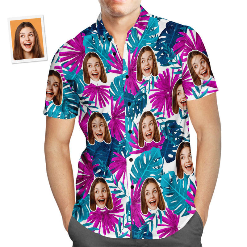 Custom Face Hawaiian Shirt Flower Leaf Men's Popular All Over Print Hawaiian Beach Shirt Holiday Gift