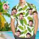 Custom Face Hawaiian Shirt Green Leaves Personalized Tee for Husband