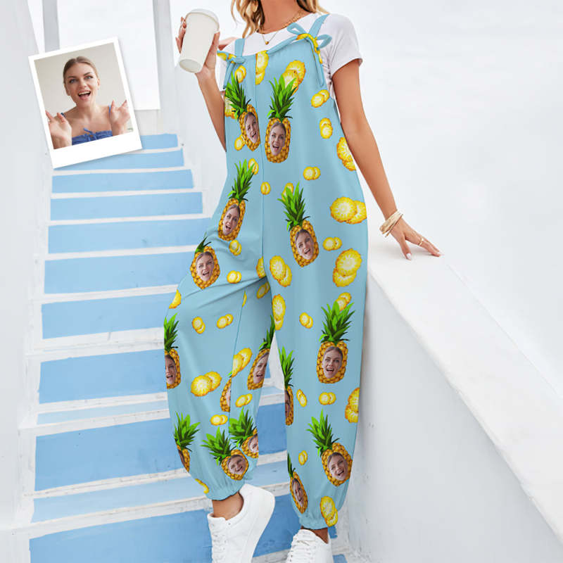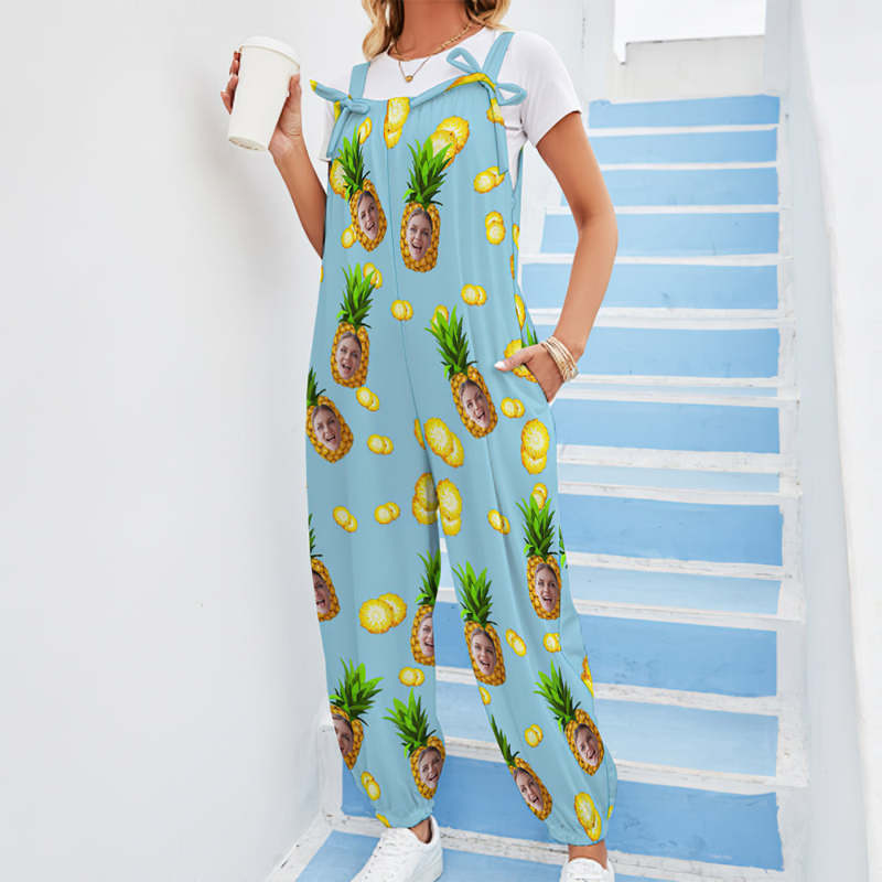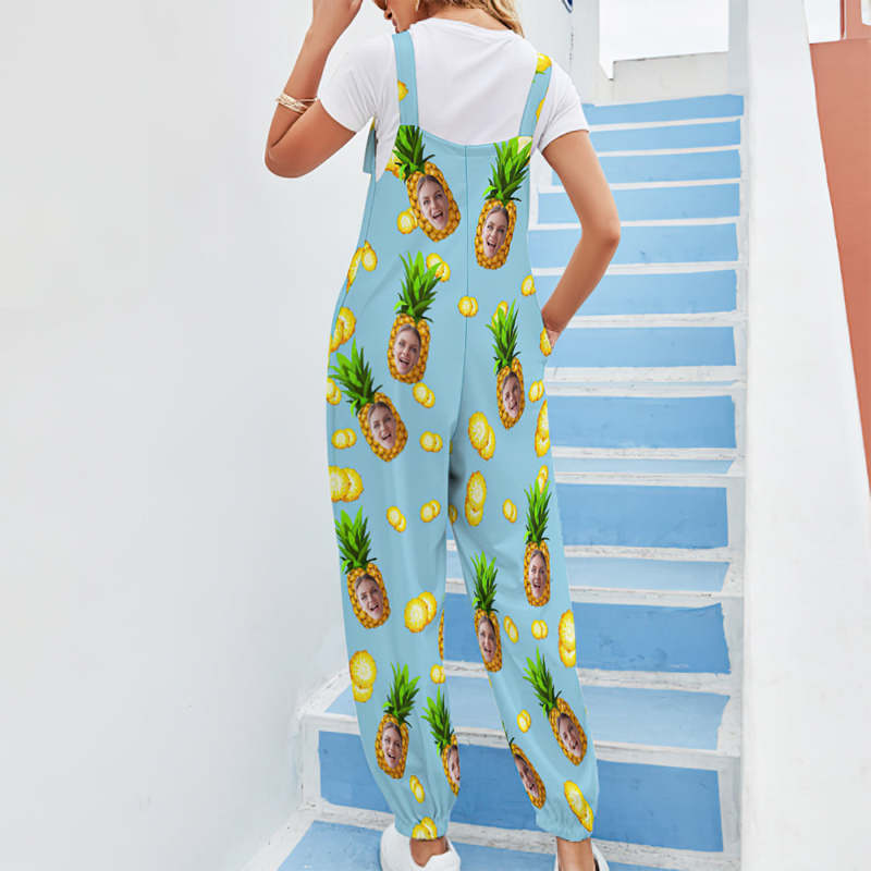Custom Face Jumpsuit With Suspender Hawaiian Style Big Pineapple Rompers