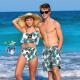 Custom Face Matching Couples Swimsuits Leaves Couples Swimwear Gift for Lovers