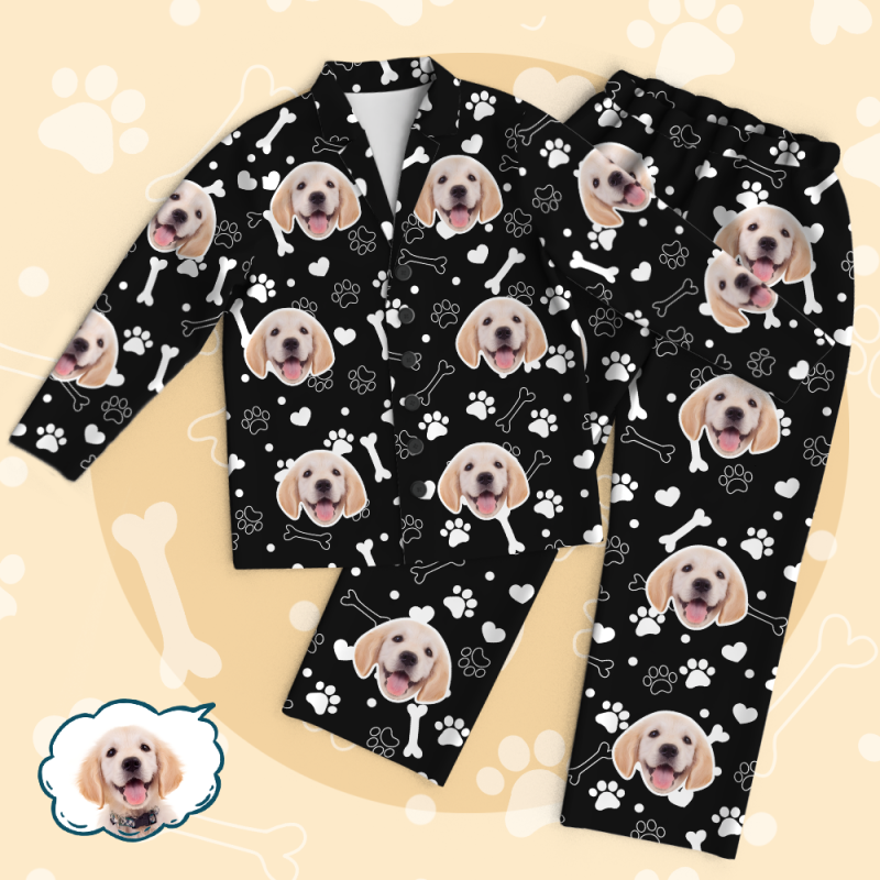 Custom Face Pajamas Set Custom Pet Photo Pajamas Black