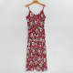 Custom Face Sling Hawaiian Style Red Long Dress White Flowers Design