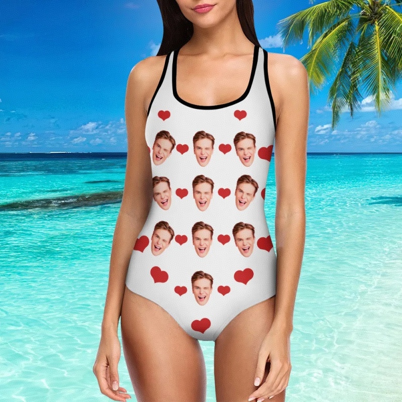 Custom Face Swimsuit One Piece Heart Swimsuit