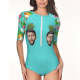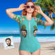 Custom Face Swimsuit One Piece Swimwear Personalized Pineapple Half Sleeve Swimsuit