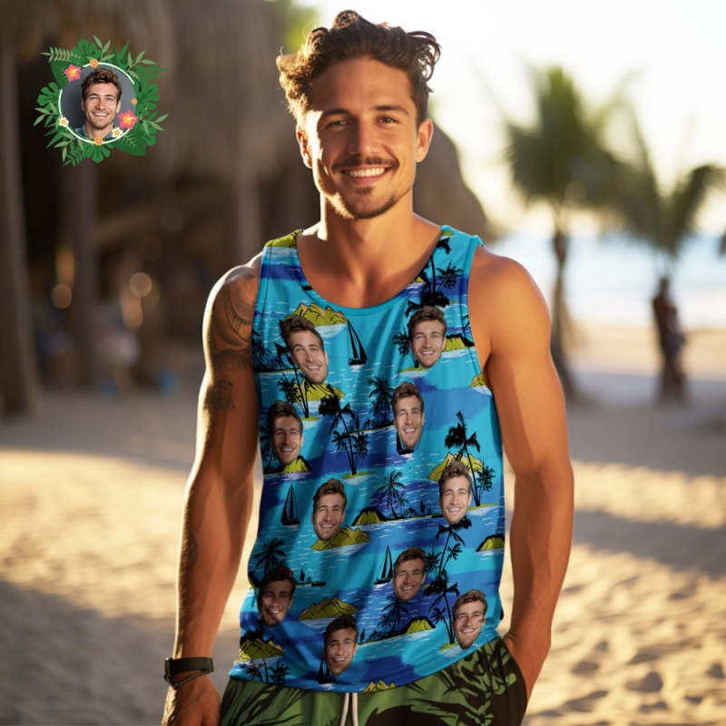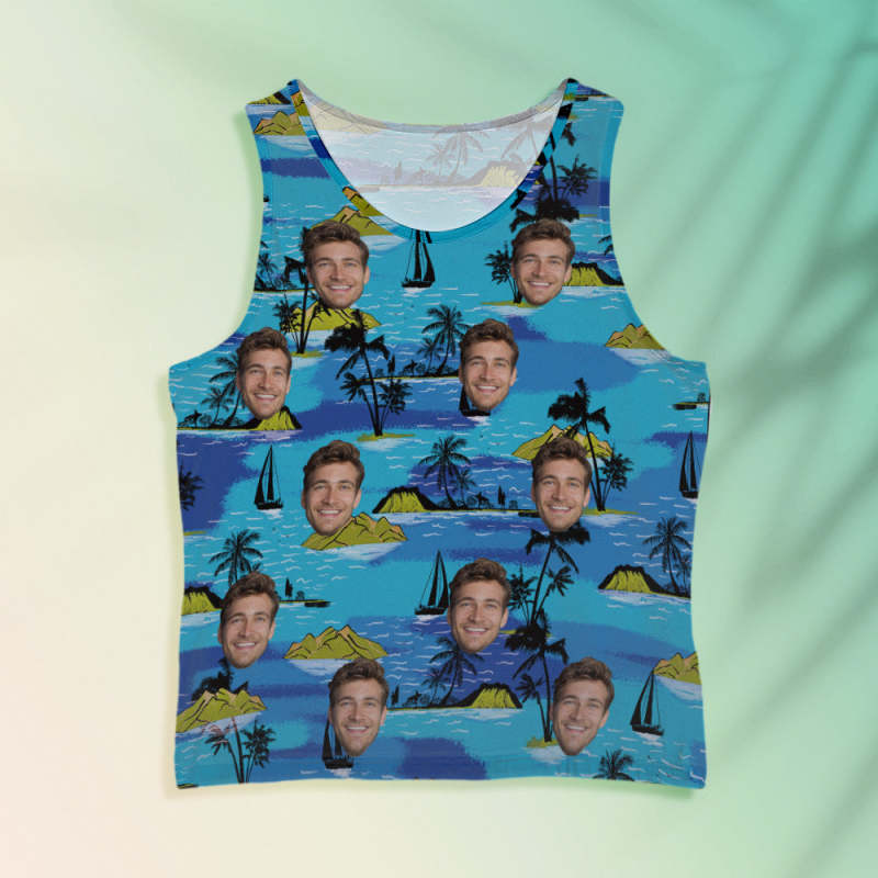 Custom Face Tank Tops Men's Sleeveless Shirt Large Leaves