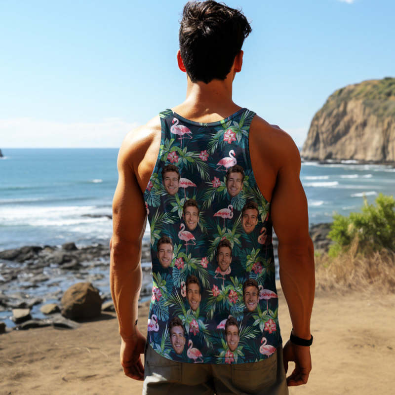 Custom Face Tank Tops Men's Sleeveless Shirt Leaves & Flamingo