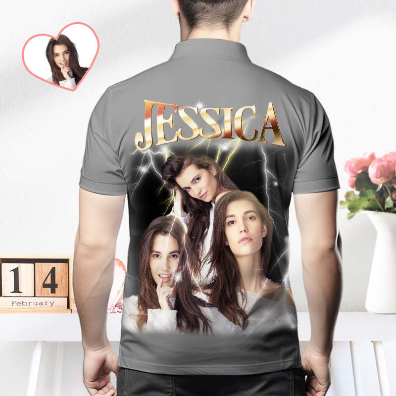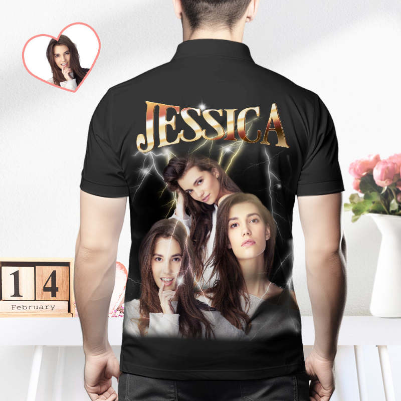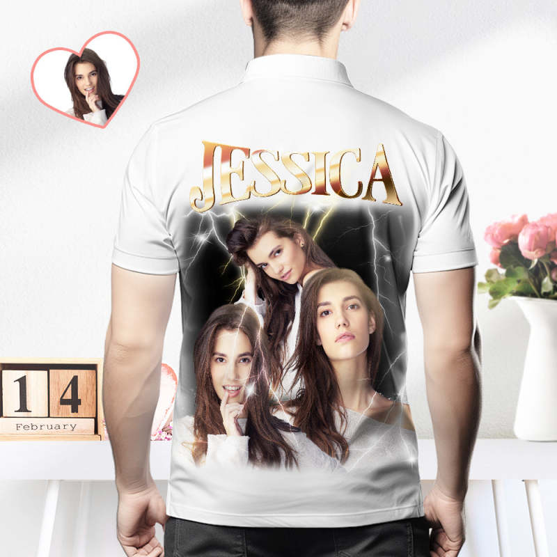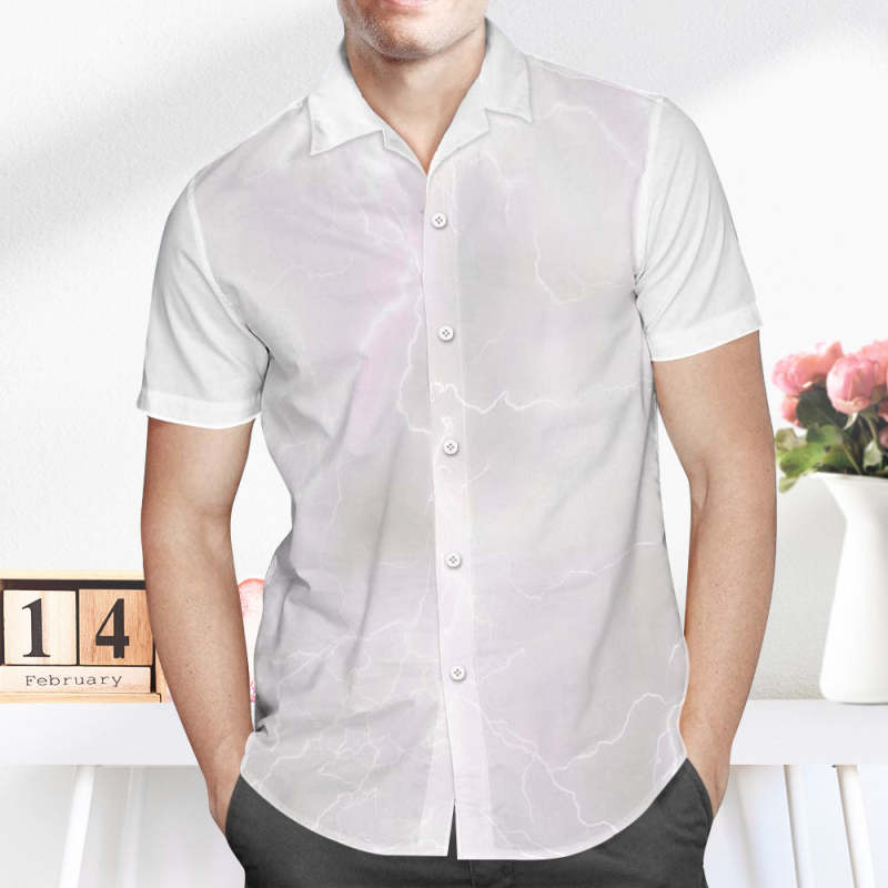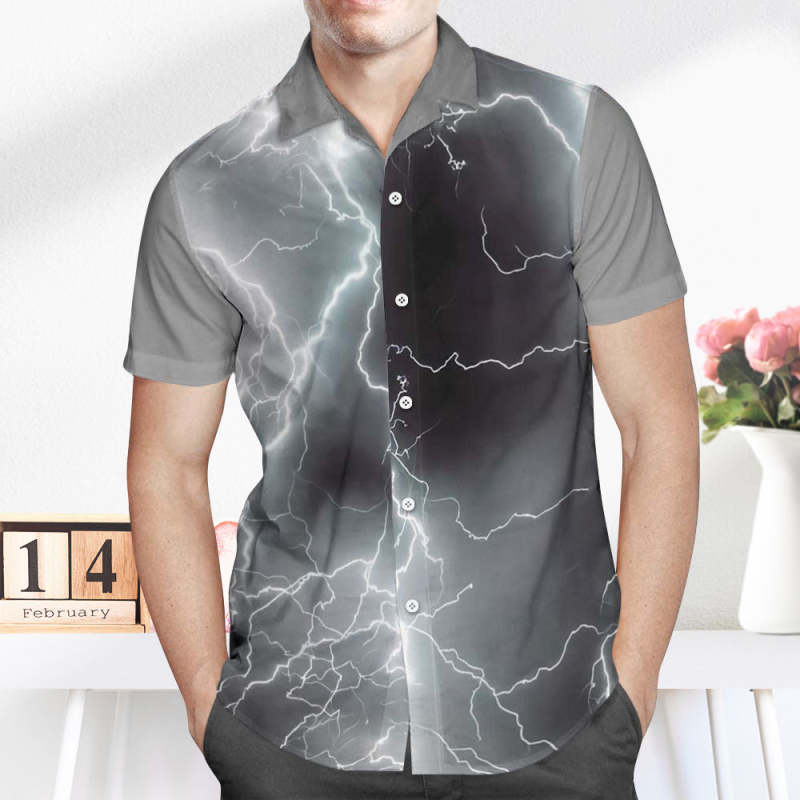 Custom Photo and Text Hawaiian Shirts Personalized Photo Gift Men's Vintage Personality Lightning Shirts Valentines Day Gift