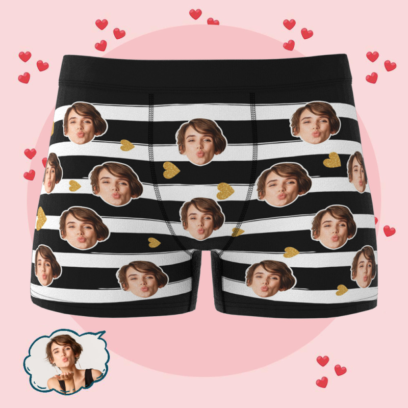 Custom Face Underwear Personalized Stripes Underwear Photo Underwear for Lover