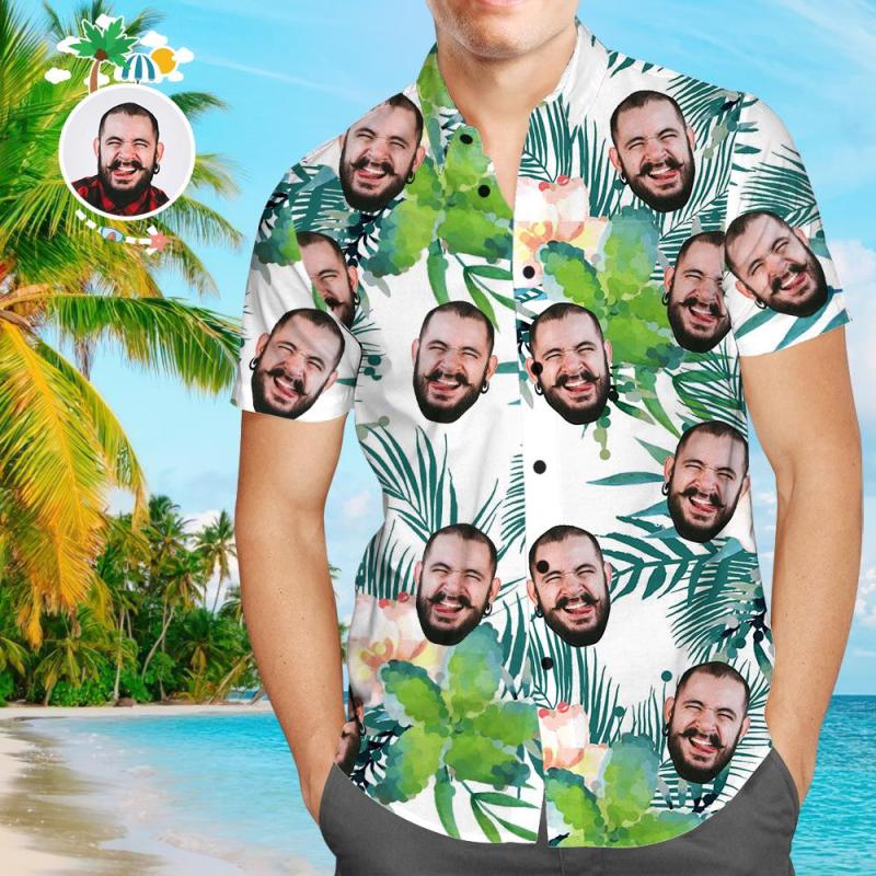 Custom Girlfriend Face Leaves & Flowers Men's All Over Print Hawaiian Shirt