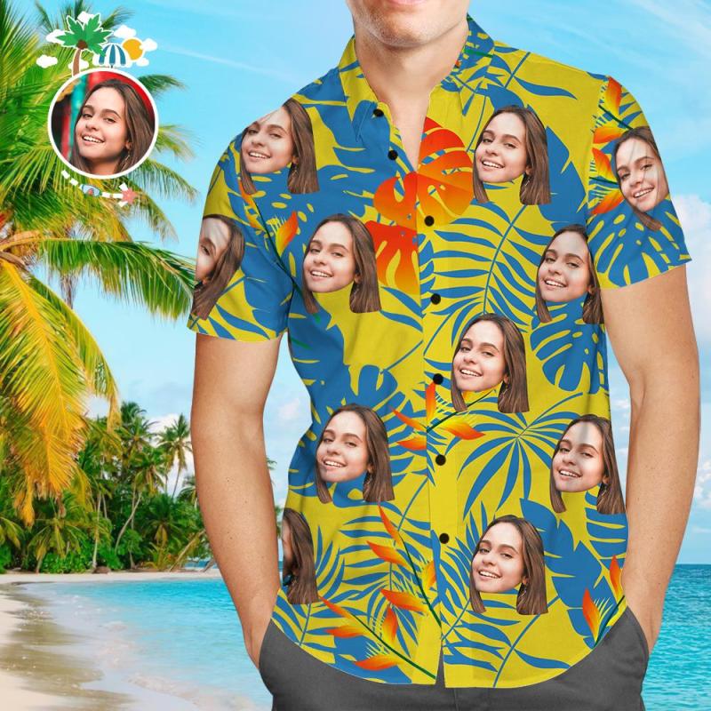 Custom Girlfriend Face Yellow Leaves Men's All Over Print Hawaiian Shirt