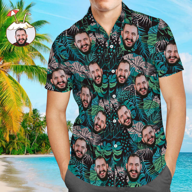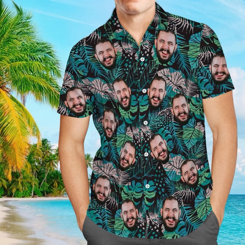 Custom Husband Face Leaves Men's All Over Print Hawaiian Shirt