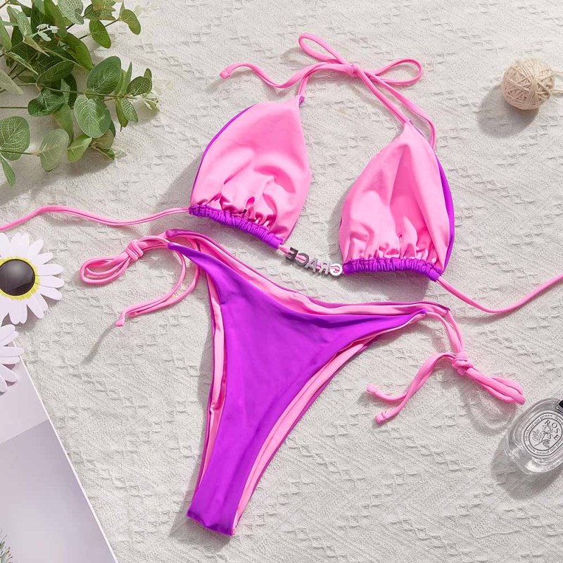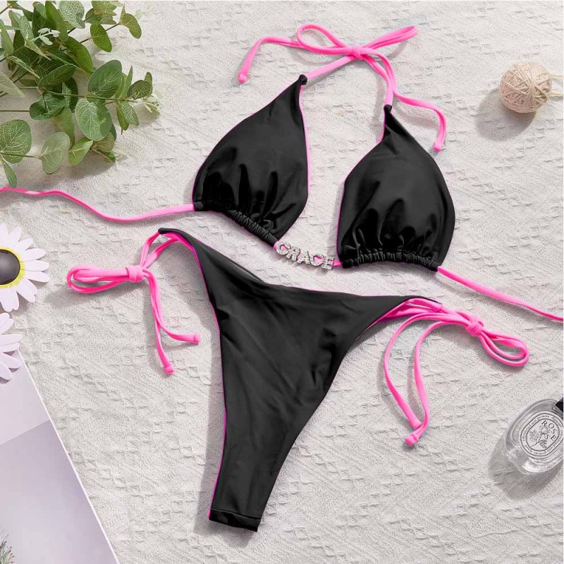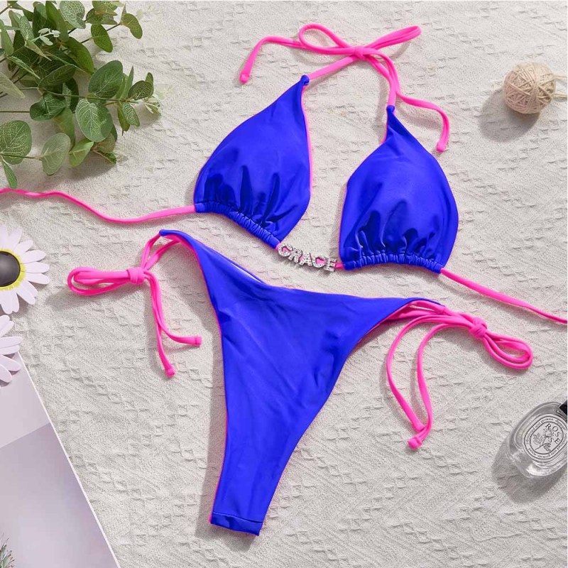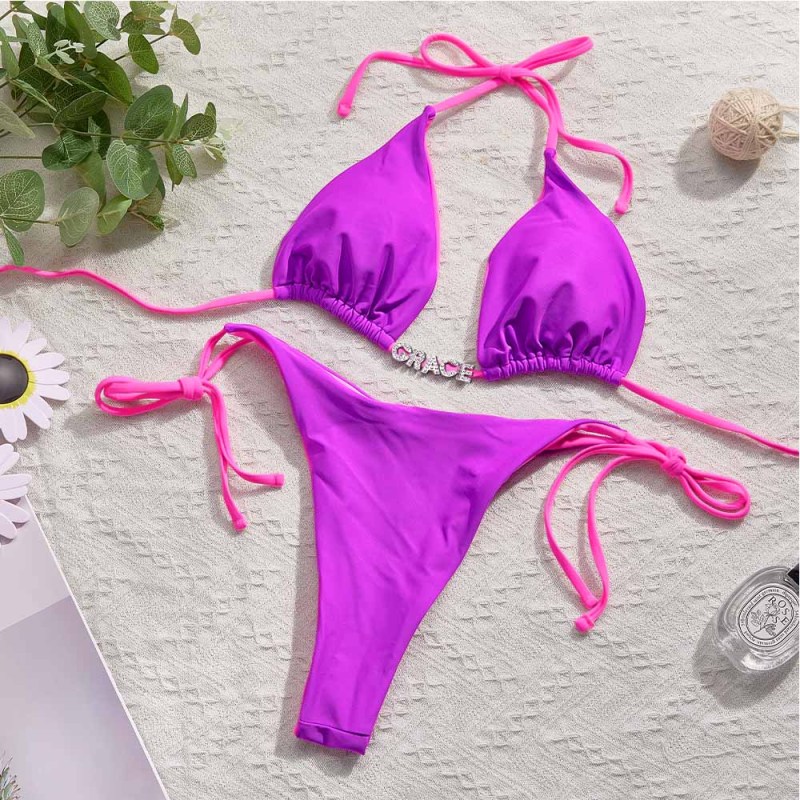 Custom Name Colorful Bikini Sets Personalized DIY Crystal Letters Bikini