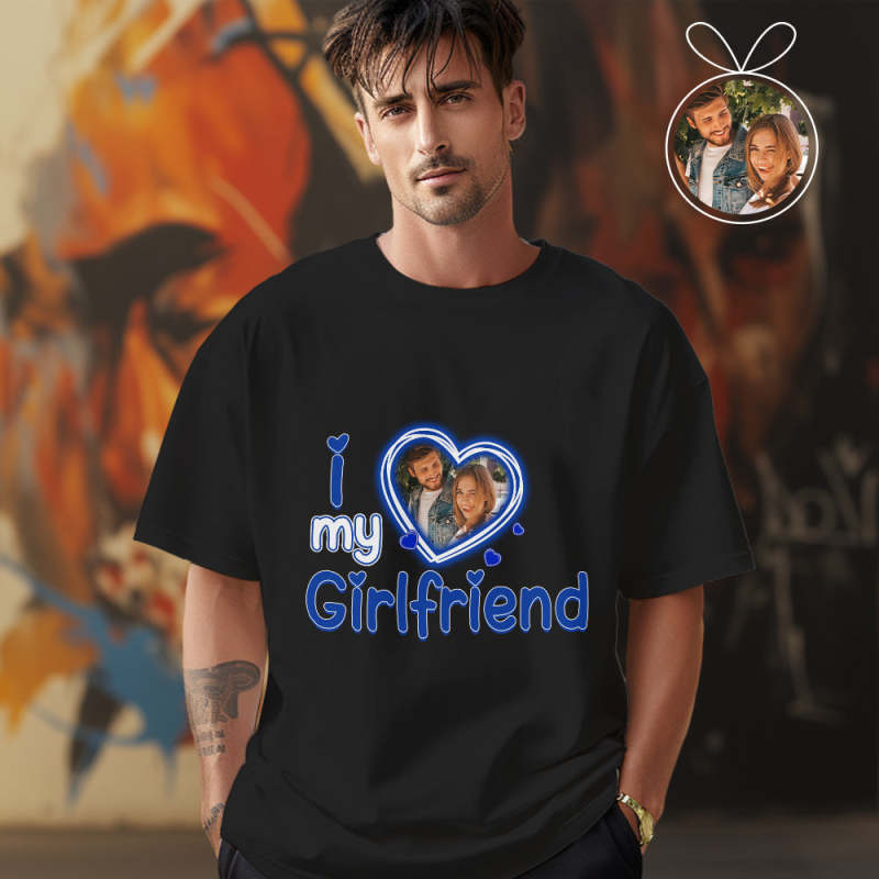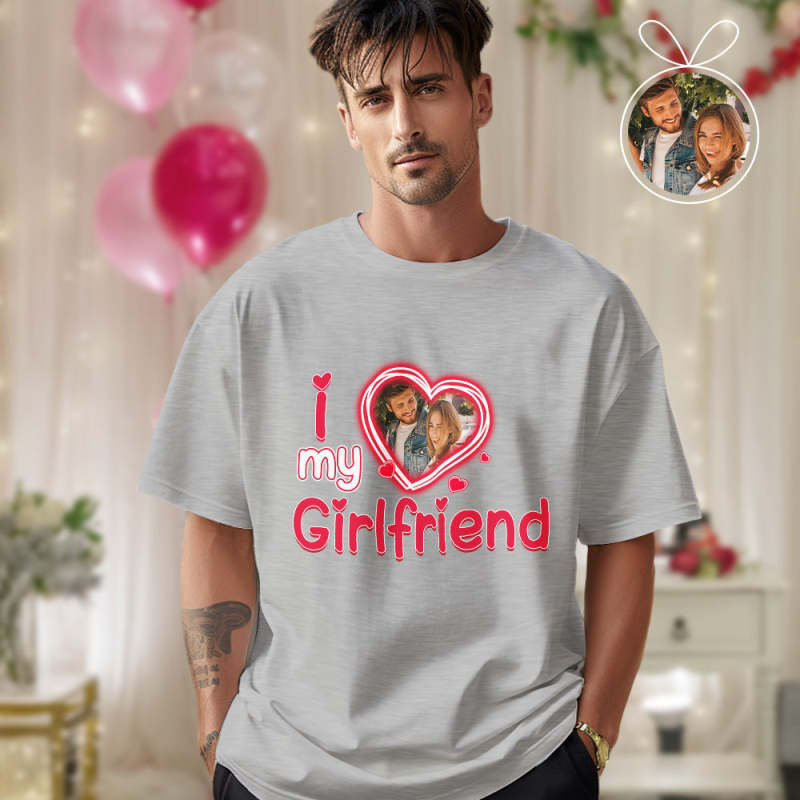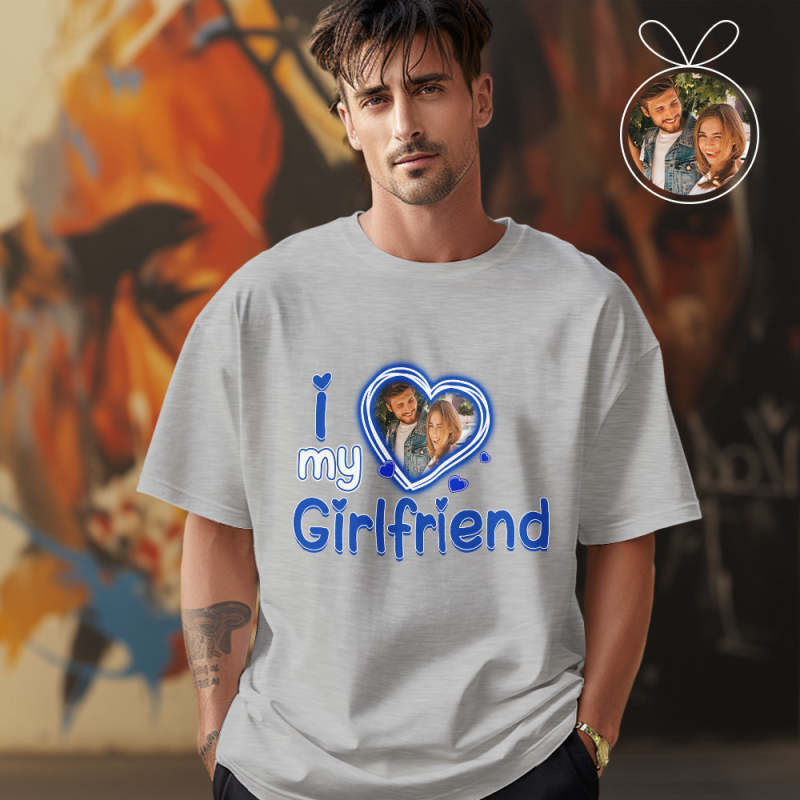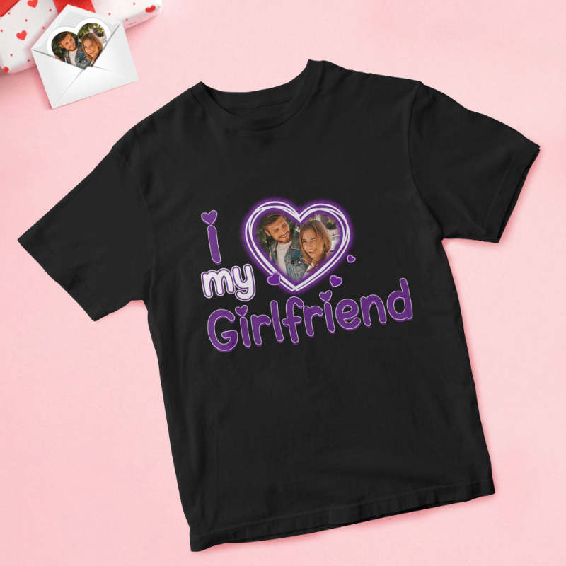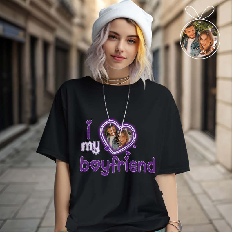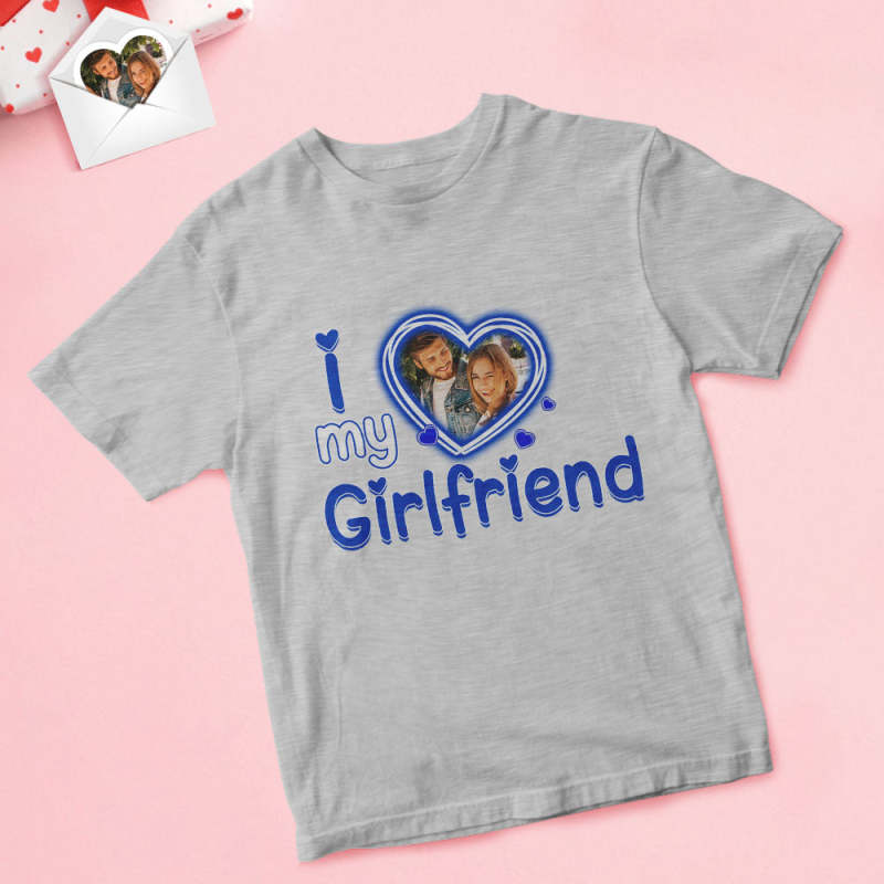Custom Photo and Text Couple Shirt Gift For Couple Husband And Wife-I Love My Boyfriend