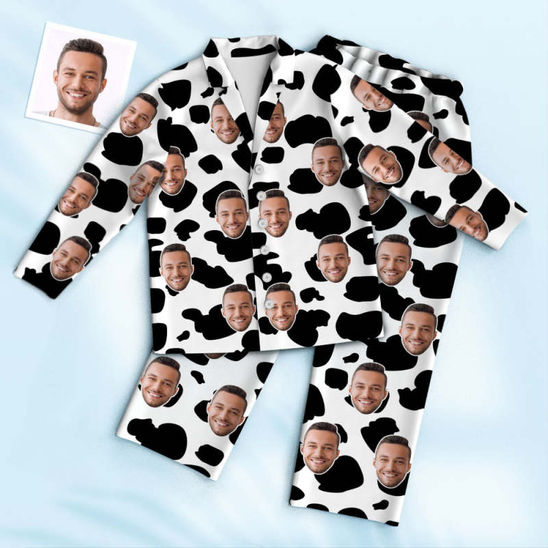 Custom Photo Face Pajama Cow Texture Funny Gifts