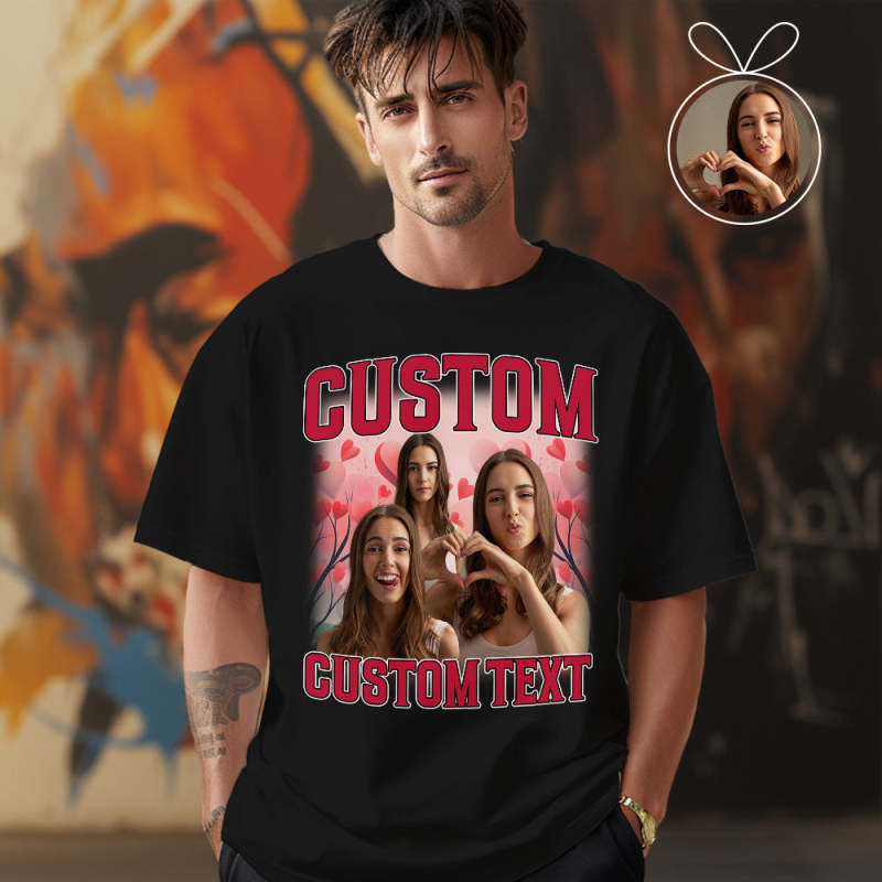 Custom Vintage Rap Shirt Personalized Photo And Text Shirt Gift Valentine's Day For Men