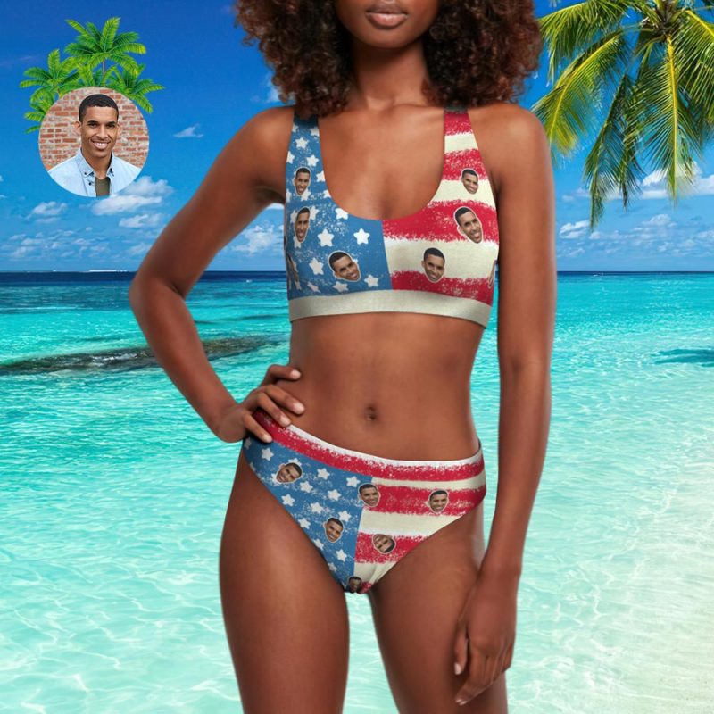 Custom Face Flag Bikini Personalized Top&High-Waisted Bikini Sport Swimsuit