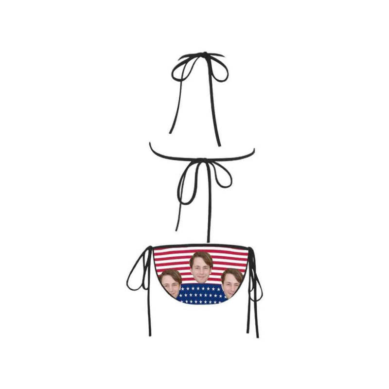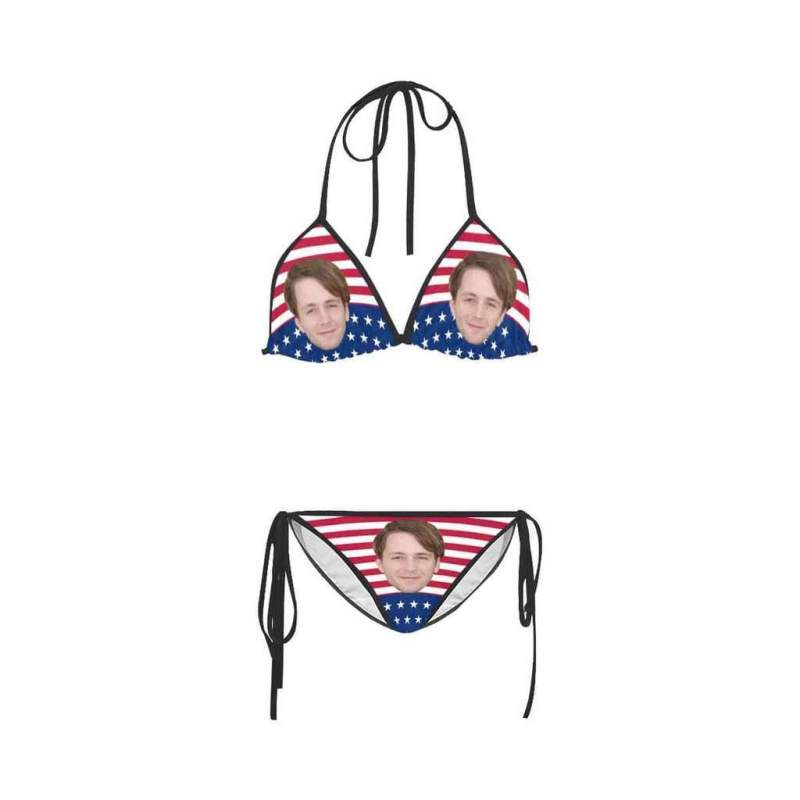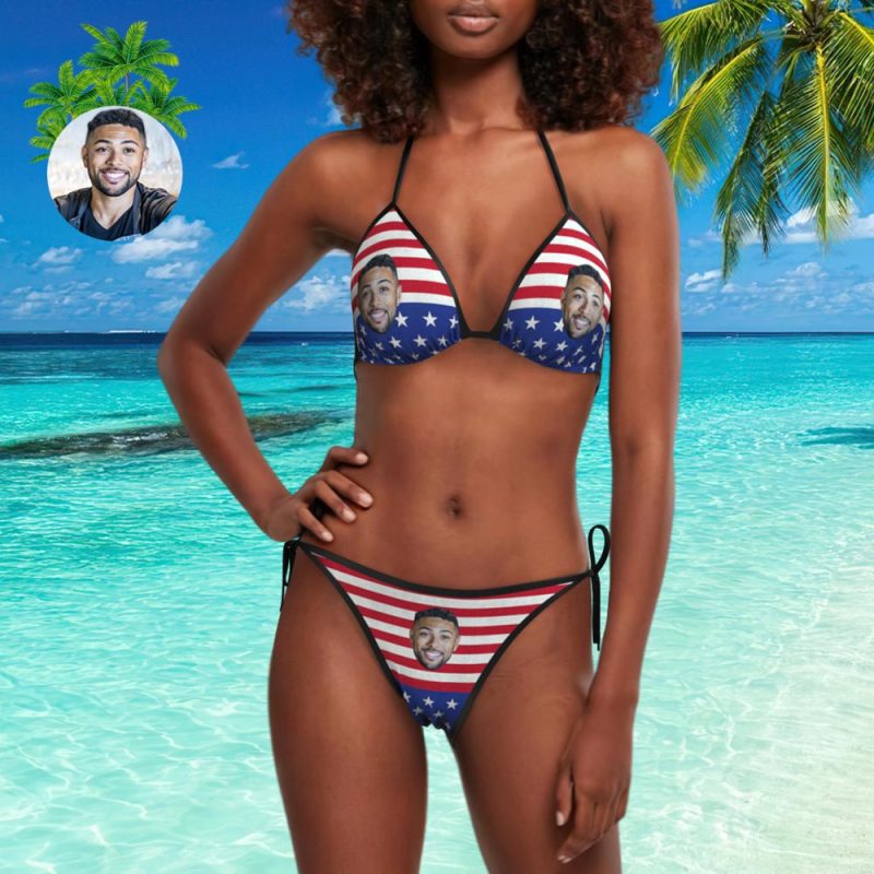 Face Bikini Custom Bikini with Husband Face American Flag Stripe Swimsuit
