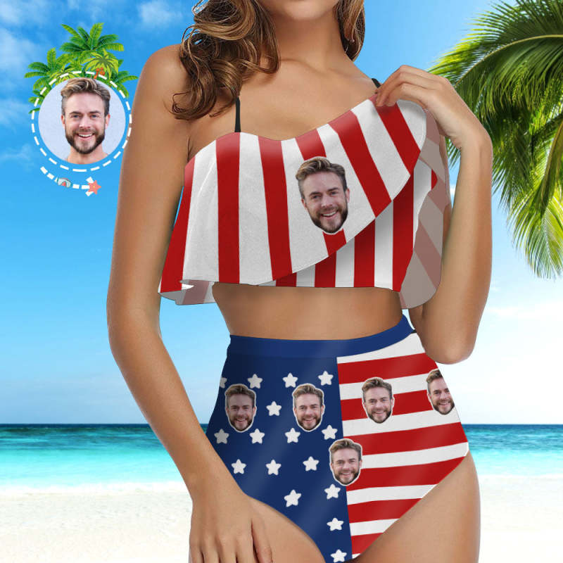 Face Bikini Custom Ruffle Bikini with Boyfriend’s Face - American Flag