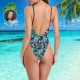 One Piece Swimsuit Face Swimsuit Custom Bathing Suit V-Neck with Face - Colorful Leaves