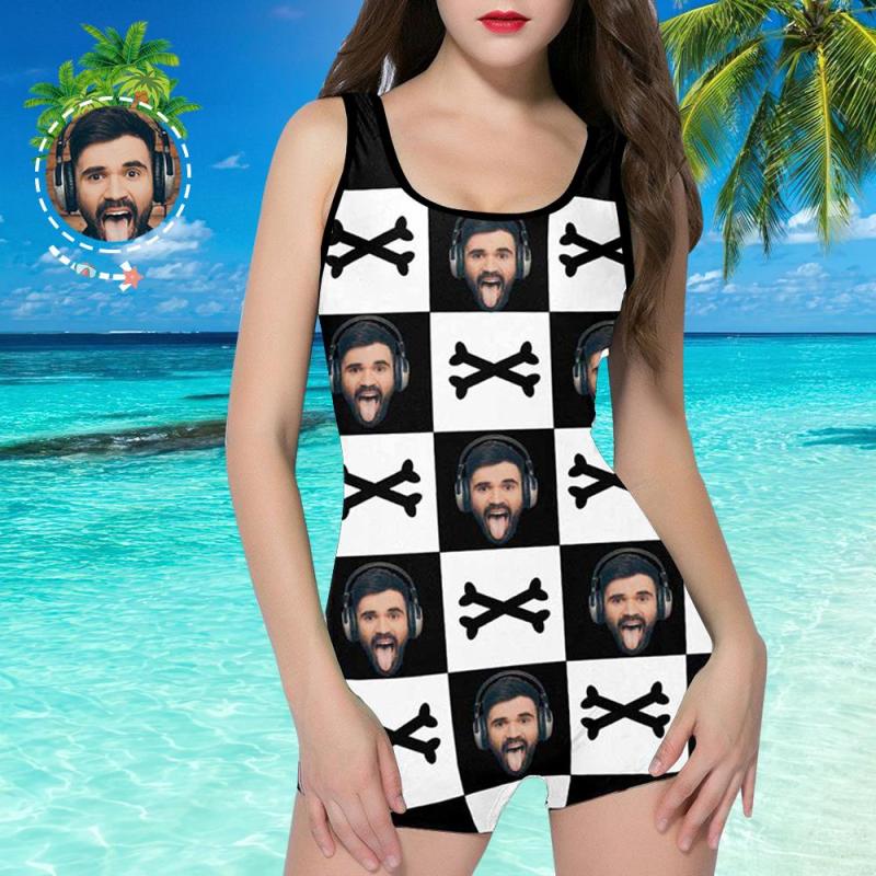 Face Swimsuit One Piece Swimsuit Custom Bathing Suit with Face - Black and White Bone
