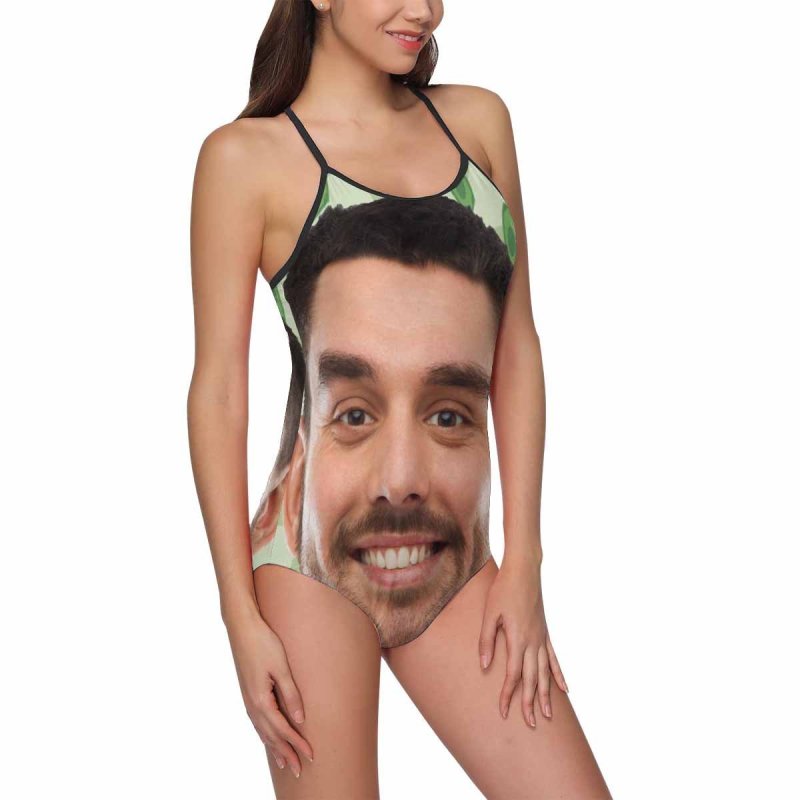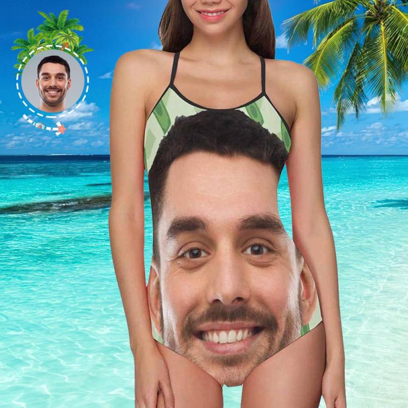 One Piece Swimsuit Face Swimsuit Custom Bathing Suit with Face - Green