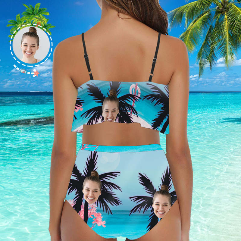 Face Swimsuit Custom Bikini with Face Sexy High Waisted Bikini-Coconut Tree