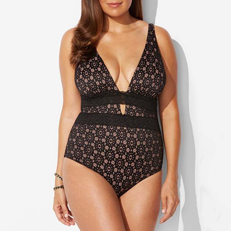 Jackson Lace Plunge One Piece Plus Size Swimsuit